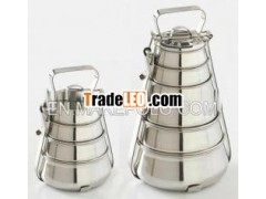 Our high-tech manufacturing unit equipped with latest machinery andtools enable us to manufacture, export and supply our clients abroad array of steel Tiffins.This product is widely used in various hotels, restaurants, officesand residents. In addition, this is thoroughly tested for qualityon different quality parameters, before being supplied to theclients. Incorporated with features like portability, easyhandling, leak proof nature, corrosion resistance and durability,this product is available in various specifications at marketleading prices. Also offer Stainless Steel Tiffin.